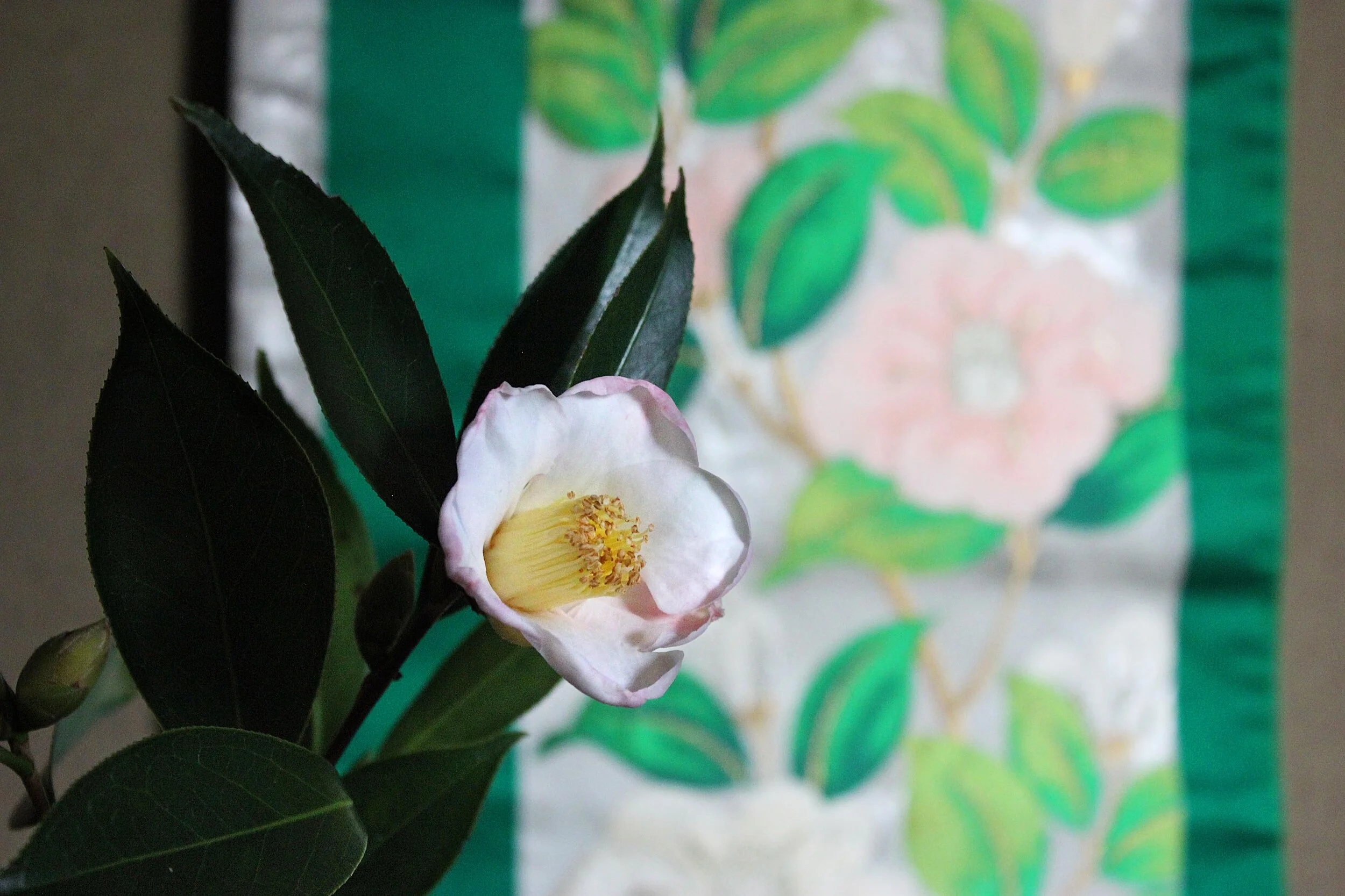 The Japanese name, 椿 (Tsubaki), is made from the symbols for “tree” and “spring”. But if it is admired for its connection to spring in Japan, its resemblance to the tea tree is noted in China. Its Chinese name 山茶花 (Shāncháhuā) is a combination of the symbols for “mountain”, “tea” and “flower”.