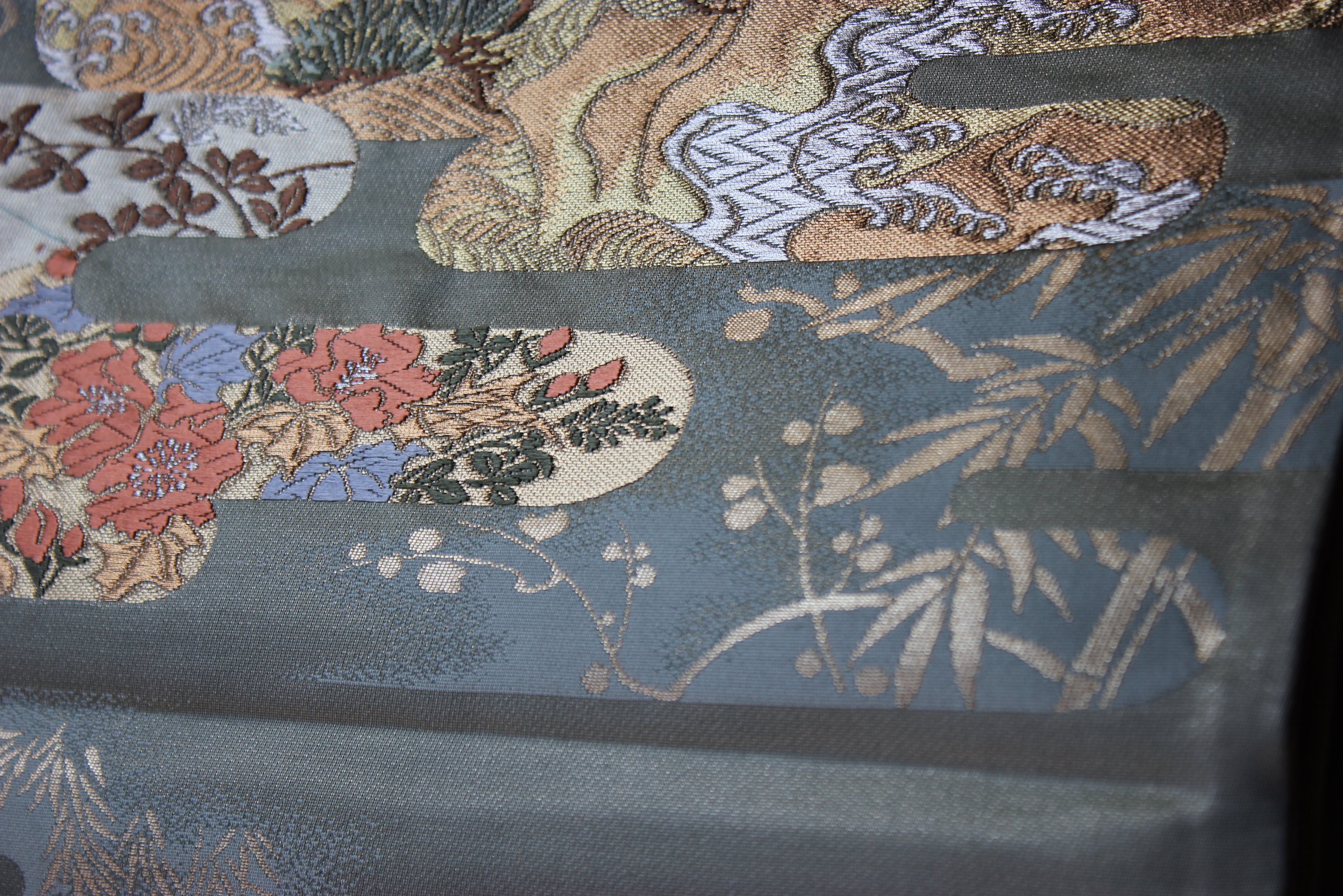 This obi is woven jacquard silk and lamé gold threads. Due to its high quality, the details of the pattern are very sharp and textured.