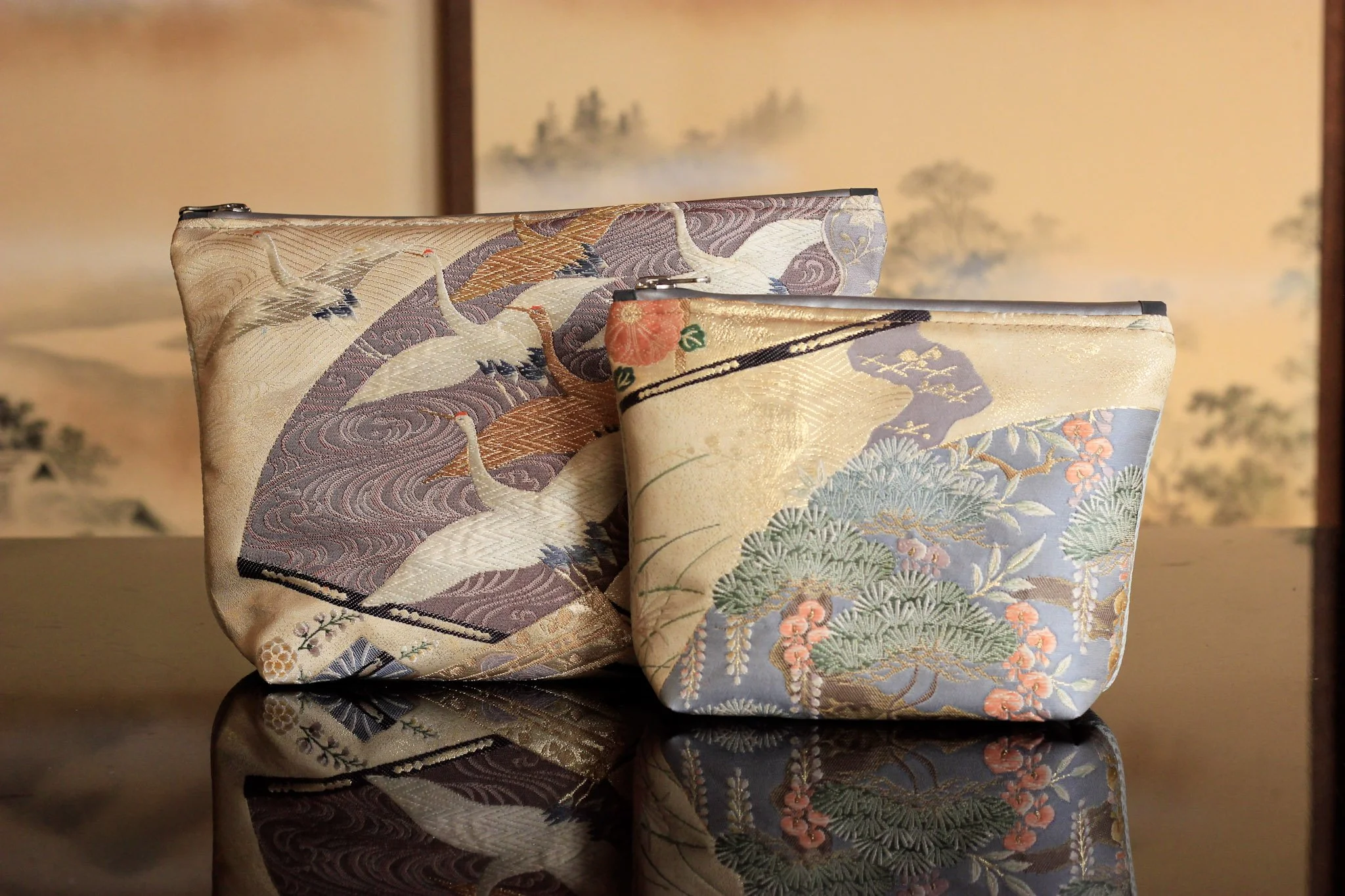 As a kimono pattern, it is an auspicious symbol frequently worn on bridal kimono and accessories. When a couple of cranes are represented flying side-by-side it may wish the spouses a happy and long life together. But the cranes can also be observed in many other aspects of everyday life in Japan, the most common being the origami shaped crane, a well-known symbol for peace around the world.