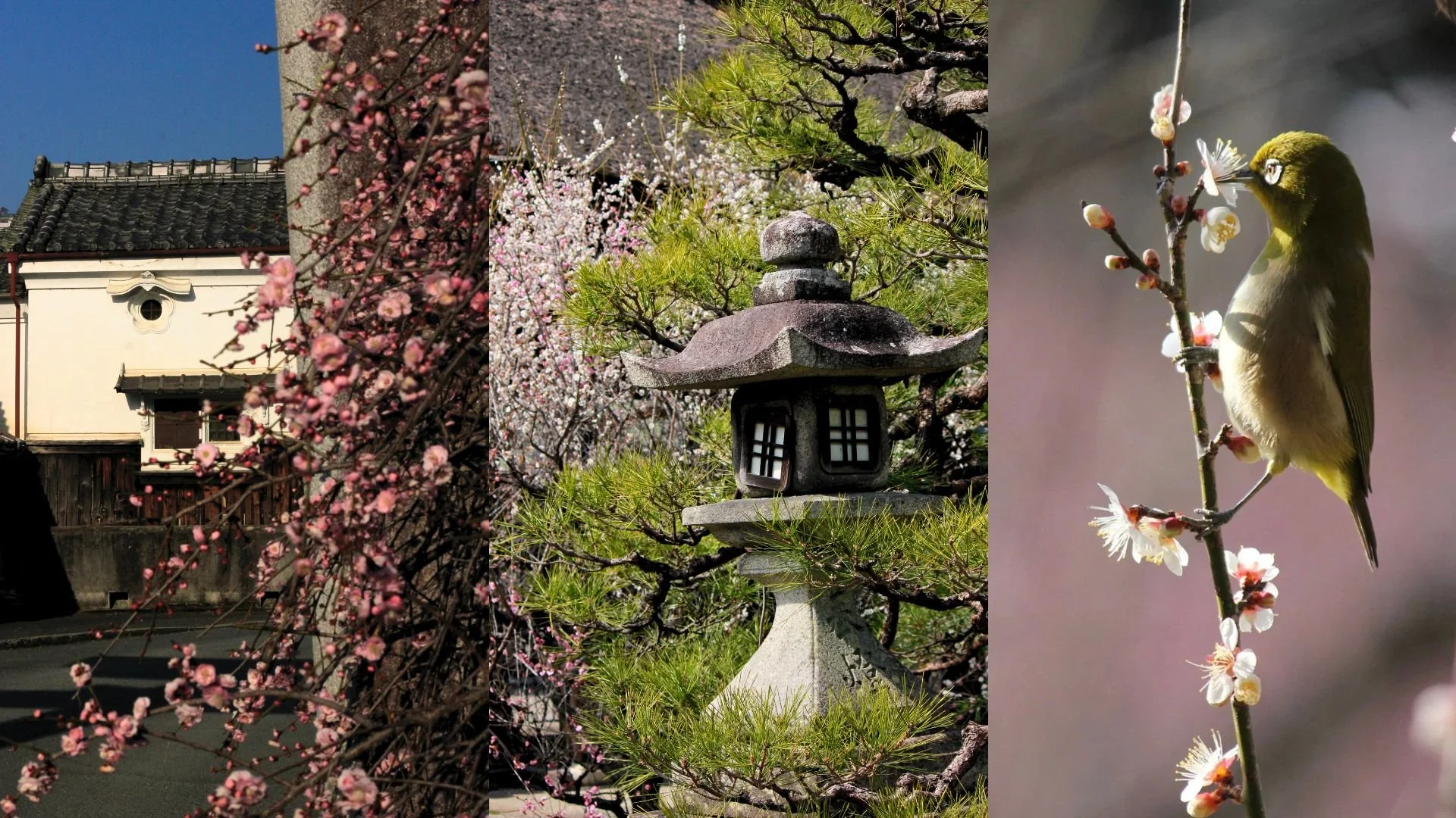The mejiro birds welcoming spring in Umenomiya Taisha’s plum garden. A quiet shrine visit away from the crowds.