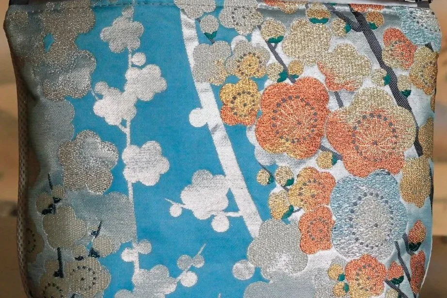 This obi felt very special to me for two reasons. First, the scale of the momiji leaves is delightfully large. Second, the maple leaves are woven together with contrasting plum blossoms in cool tones. In reality, there is an entire winter between the season of red leaves and the moment plum flowers begin to bloom, so I found it amusing to see them combined on a single obi. They represent the two most exciting moments of the colder months, the milestones just before and just after the deep winter, when most trees are still asleep for a couple of months.