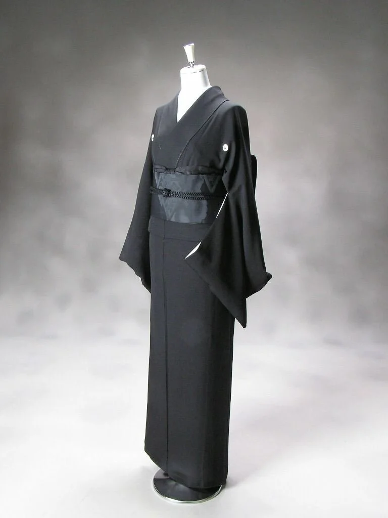 An example of mofuku kimono outfit where the obi is used on the satiny side.