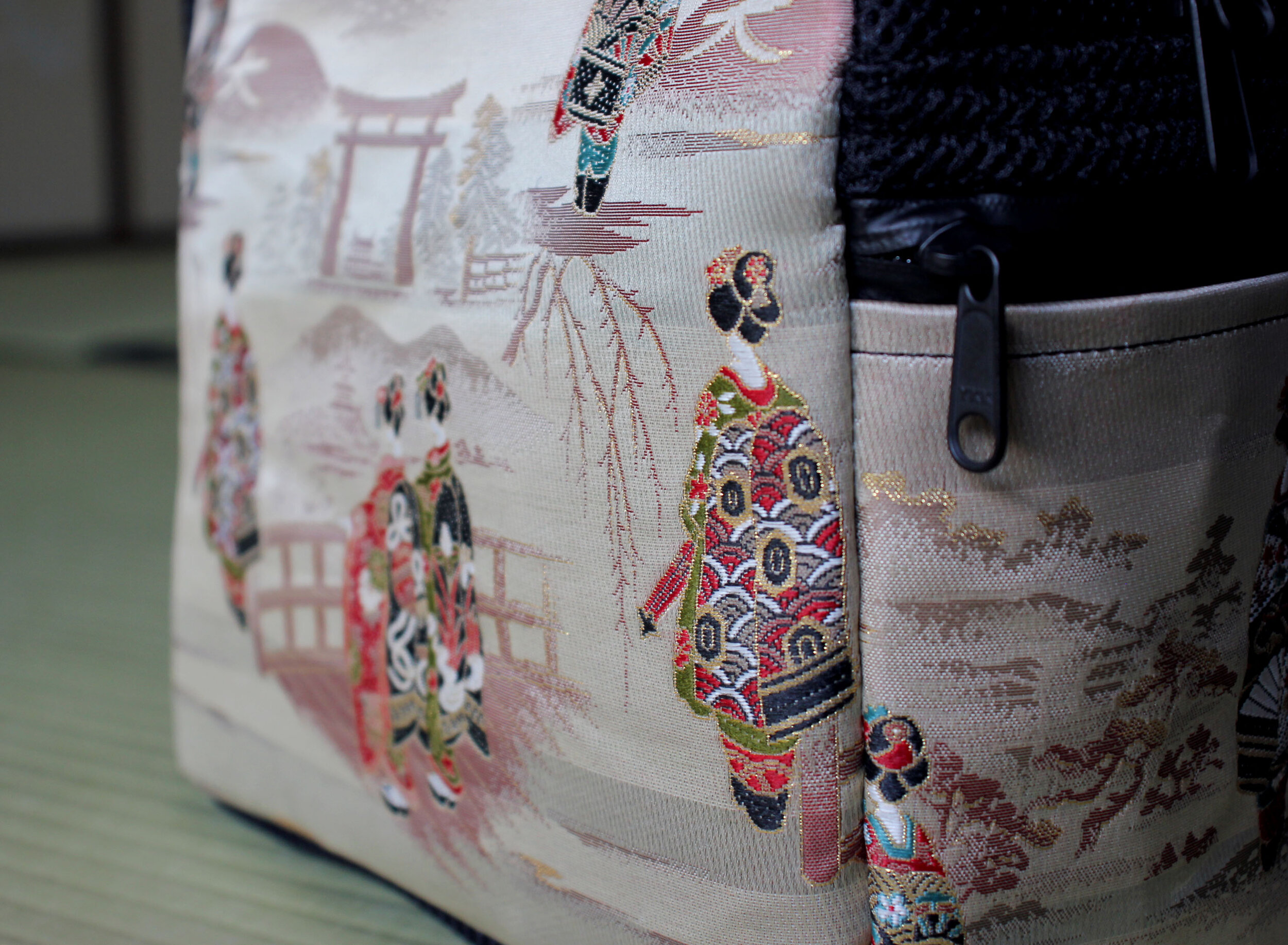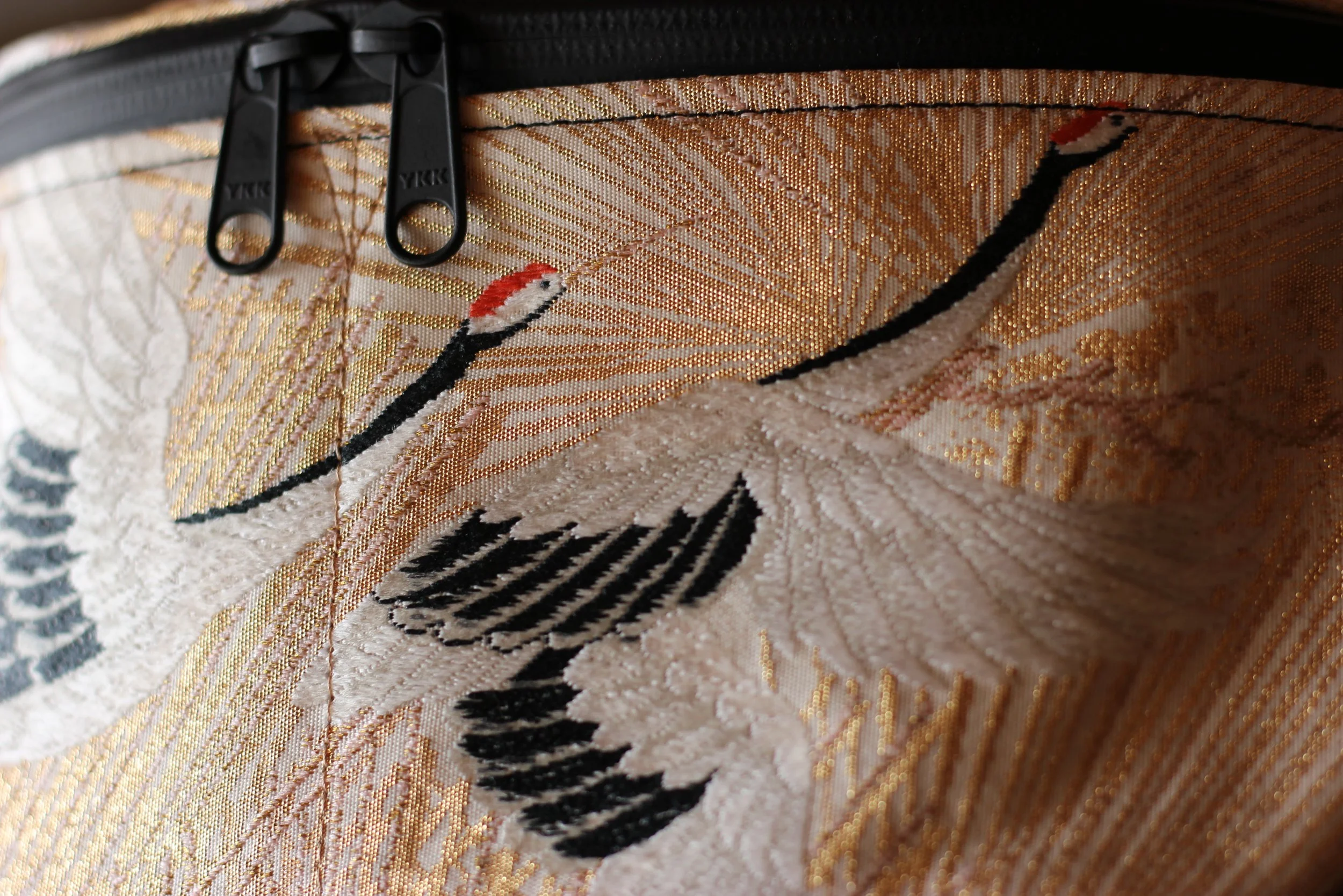 Here is a very limited series of Mikan bags featuring the contemporary treasures of Nishijin.